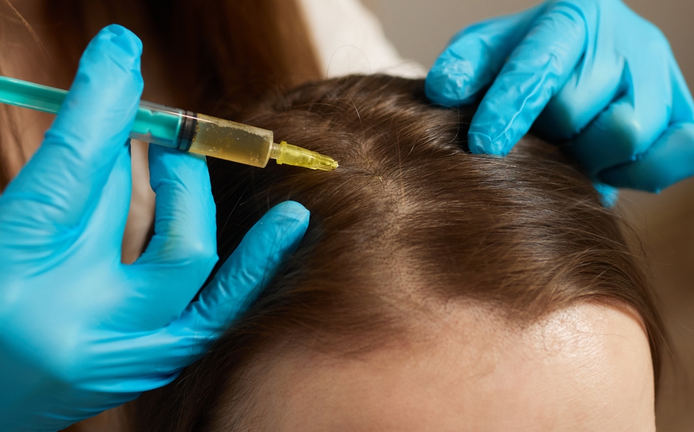 The procedure involves drawing a small amount of blood, processing it to concentrate the platelets, and then injecting this platelet-rich plasma directly into the scalp.